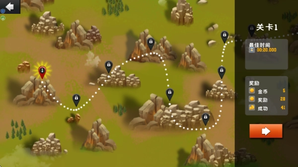 如图所示,每个关卡都设有不同的目标与奖励机制。玩家可多次挑战关卡,凭借最优表现来赢取所有奖励。