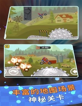 在游戏里,玩家会化身一名技艺精湛的特技摩托车手,需要操控摩托车在颠簸不平的地形上驰骋,挑战各类高难度赛道,感受极限驾驶带来的强烈刺激。通过关卡后,玩家能获取奖励,这些奖励可用于解锁不同类型的摩托车,还能对车辆进行升级改装,以此提升各项性能,让驾驶操控变得更加得心应手。