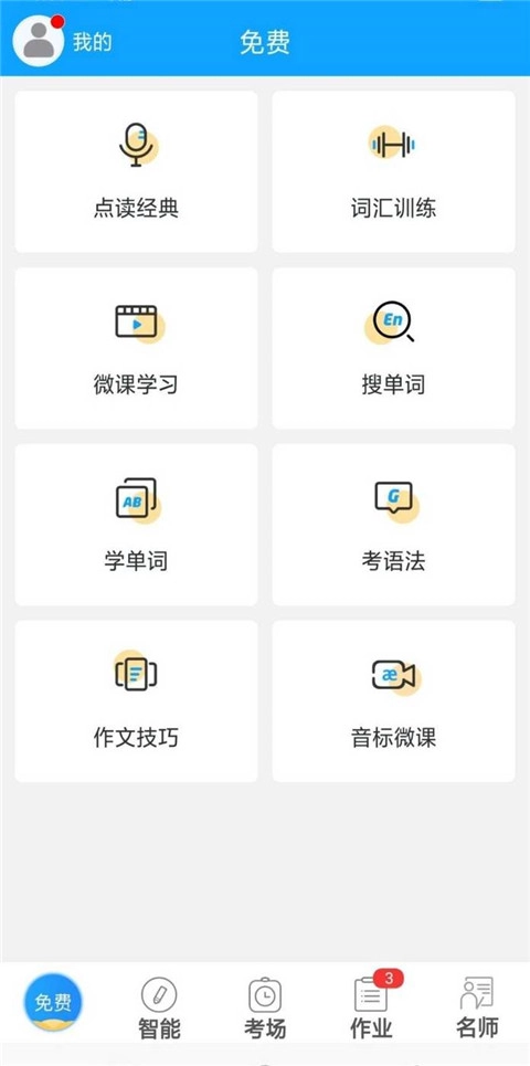【智能】板块包含各单元的词汇、听力、拓展、语法等智能练习,以及智能专项练习与辅导功能。借助智能专项练习辅导,能够帮助用户查漏补缺,从而维持良好的学习成绩。