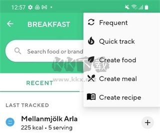经常:在这里,您可以找到您经常跟踪的食物列表