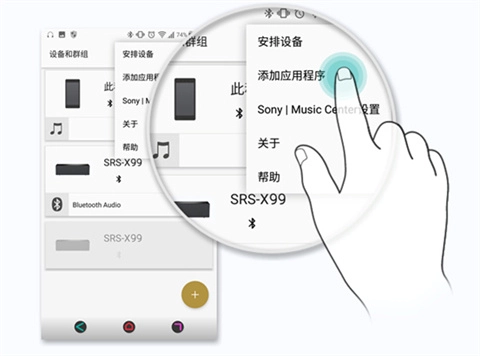 把应用程序添加到设备界面,就能播放已连接设备里应用程序中包含的音乐。