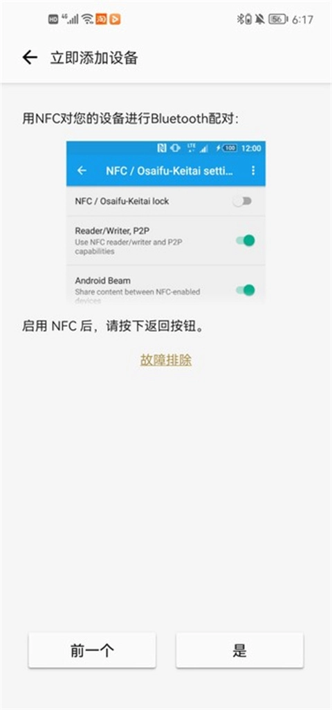 解锁智能手机屏幕,开启NFC功能,接着借助一触连接(NFC)让扬声器和智能手机之间建立起BLUETOOTH连接。