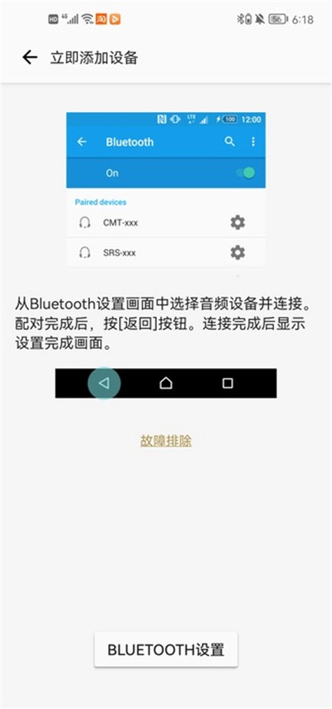 “Sony | Music Center”会在蓝牙连接成功后自动开启,请根据屏幕上的指引进行操作。