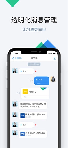 工作与社交无缝衔接,可随时创建企业内部群组,同事间通过实名认证沟通更便捷。