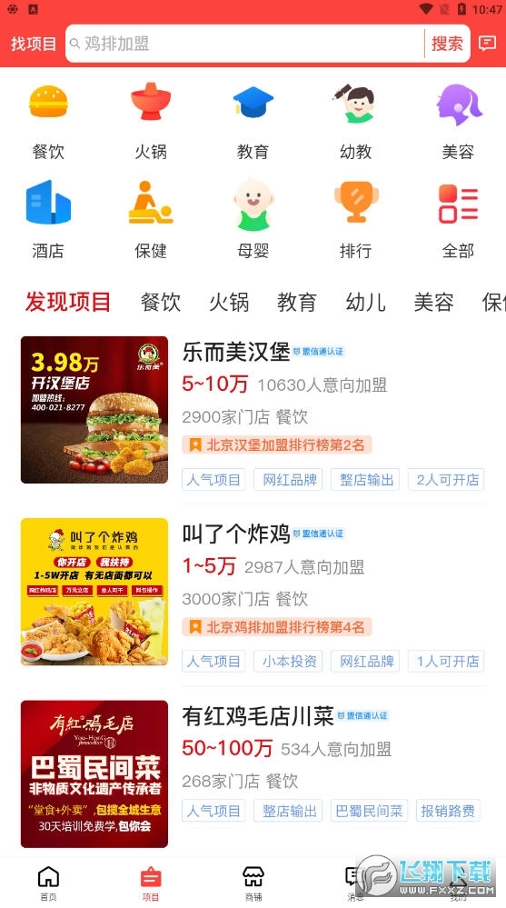 100W+的项目品牌和商铺信息,涵盖各行各业,商铺信息覆盖全国大多数省市区。一站式解决开店找项目找店铺问题。