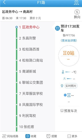 接着我们就能查看这条F1线路,里面详细的站点、发车时间以及车牌号信息,大家还能进行预约收藏,设置乘车提醒。