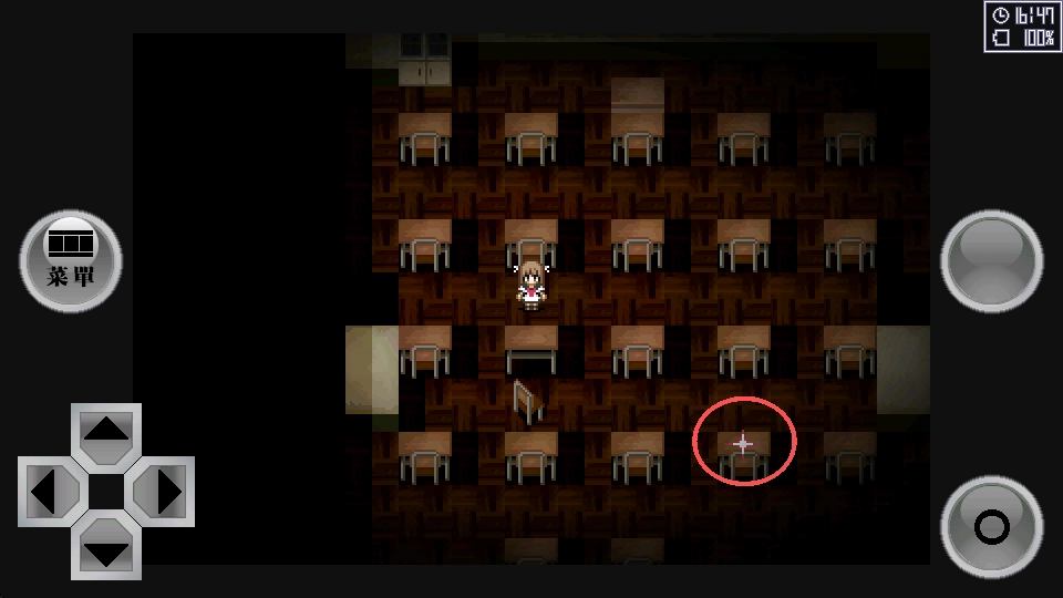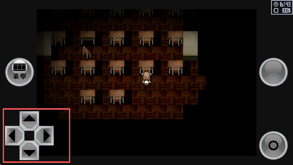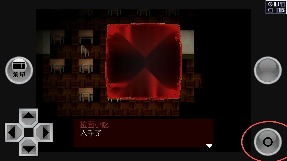 使用左下角的虚拟键操控角色走到发亮物体旁边