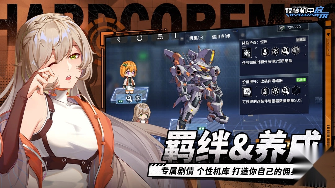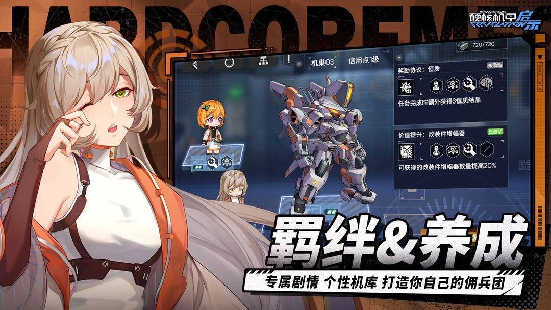 《硬核机甲启示》是一款科幻未来风的机甲动作游戏,玩家既能亲自操控各式强力机甲,也能欣赏精美的二次元角色立绘。游戏采用抽卡机制,既支持氪金抽取强力角色与机甲,也能零氪轻松体验,整体平衡性较好。剧情中,玩家将以PMC指挥官的身份,在火星殖民地与多方势力周旋,目标是揭开火星乱局背后的真相。对这类风格感兴趣的玩家,不妨尝试体验!
