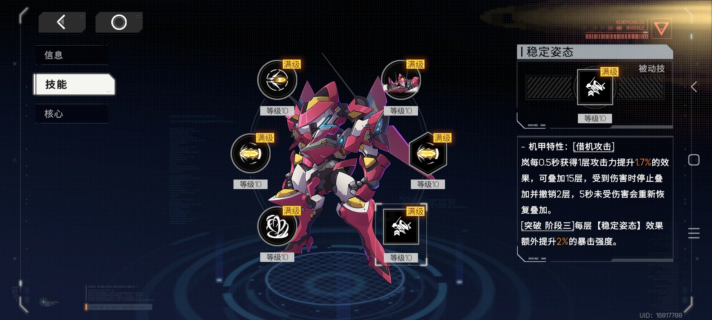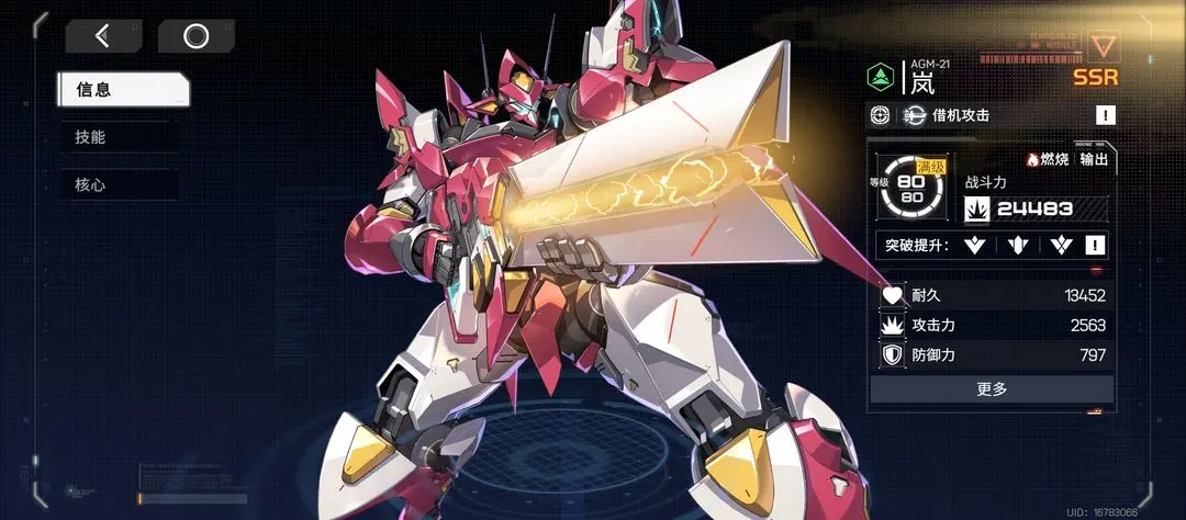 岚作为主C机体,要想把伤害拉满,得先解决充能问题,还得叠燃烧状态才行,这就导致它的暖机时间比较长;另外,它和当前UP的弧光机体在位置上存在冲突。