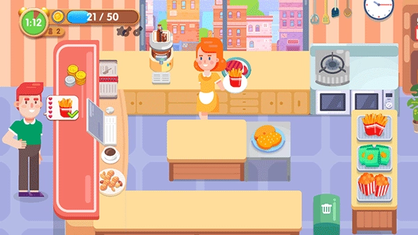 每为顾客完成一个订单,都可以获得大量的金币。