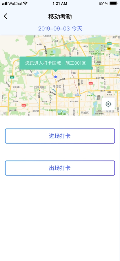 乐工宝考勤打卡具备线上打卡功能,可实时获取人员的位置信息。