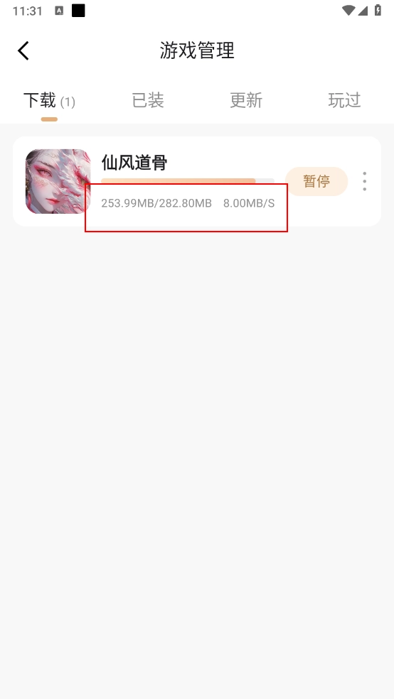 最后在游戏管理页面就能查看进度,完成后一键安装就能畅玩了。