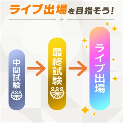 在“育成”阶段,会依次经历前期训练、中期考核、后期训练,最后冲刺期末考核。每次考核时,都要围绕【初】的亮相机会与其他学生展开表演较量。而在此之前,需培养“Vo”“Da”“Vi”三项参数,并将它们提升至达标水准。具体如何规划日程来达成这些目标,全由制作人决定。