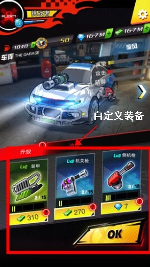 在正式进入游戏之前,玩家可以对自己的车辆进行自定义装备设置。