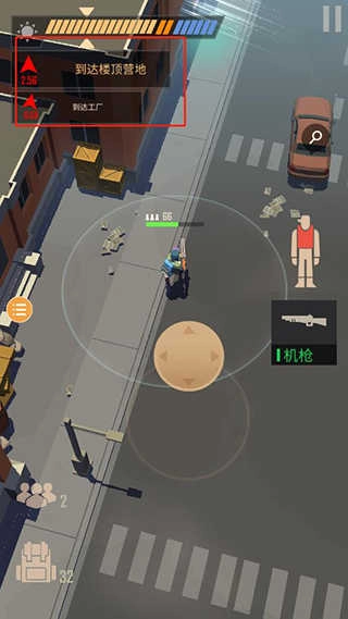只需操控虚拟按钮让其在地图上移动,当遇到僵尸时,只要处于射程范围内,系统就会自动瞄准并射击。