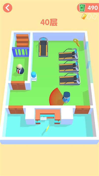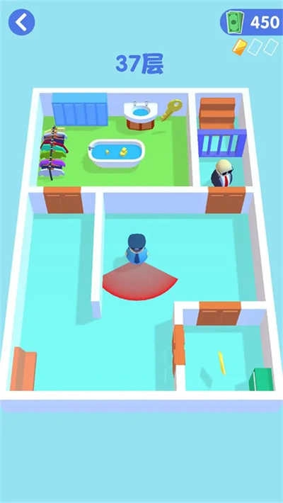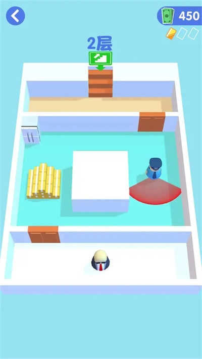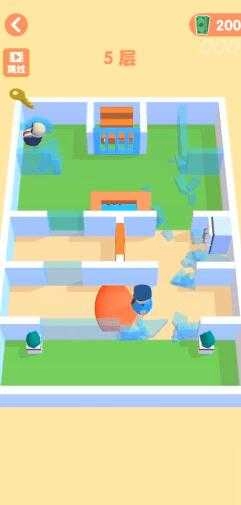 操控屏幕移动特工,避开巡警获取钥匙,打开蓝色门后上楼梯就行