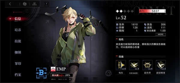 所有类型、阶级的禁闭者,都只有4个技能,分为普攻技能、必杀技能和2个大被动技能。禁闭者初始只有普攻和必杀两个技能,被动则要通过升阶解锁。