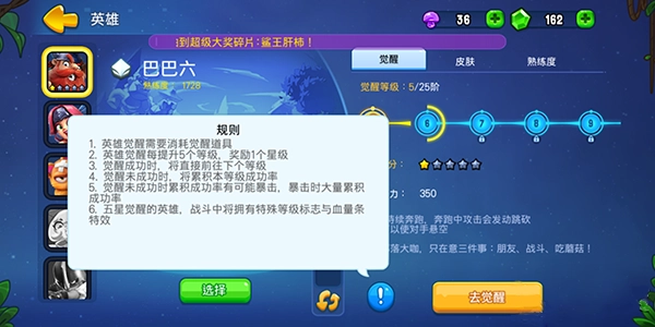 英雄觉醒后能得到全属性的加成效果,这一过程需要消耗对应的觉醒道具。其中,达到五星觉醒的英雄,在战斗时会呈现出特殊的血量特效与等级标识。若觉醒成功,该英雄会直接晋升至下一星级;若觉醒未成功,则会积累幸运值。