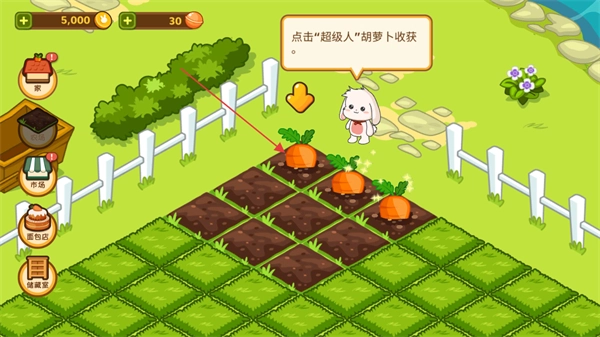 在游戏的农场区域,依据界面提示点击该作物,就能完成超人胡萝卜的采收并得到相应资源。