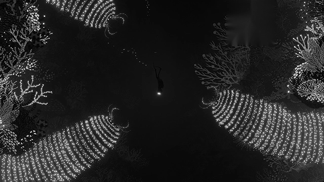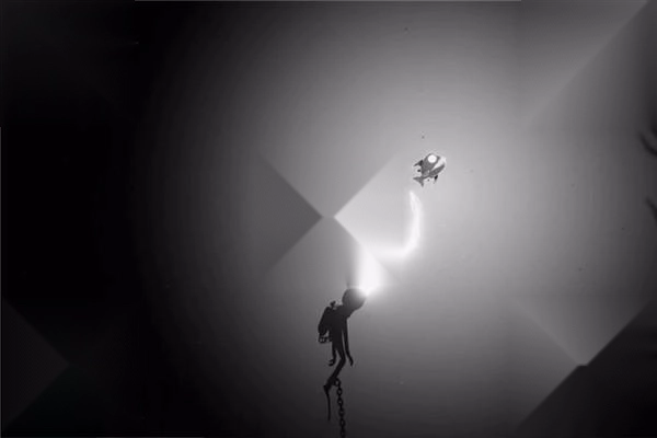 这款游戏的画风极具辨识度,画面中矗立着黑白交织的巨型物体,黑白基调的屏幕渲染出一种不安的氛围,让玩家能获得充满恐怖感的沉浸式体验。在游戏里,玩家会邂逅各类震撼人心的景象——从令人惊叹的水下奇景中,探寻那些尚未被发现的废墟,以及隐匿在深处的古老机械。