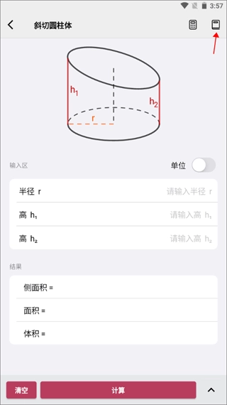 你也可以点击右上角查看计算公式,包括侧面积、面积和体积的公式。