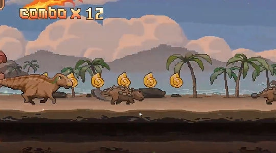 游戏采用横版卷轴式画面,玩家需操控小恐龙在场景里移动,避开障碍物与敌人。
