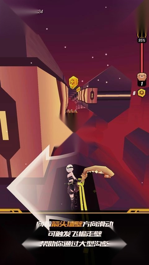 哎,前面没路啦,这时候可以左右滑动,在带箭头的墙上行走,哈哈,有没有飞檐走壁那味儿了?