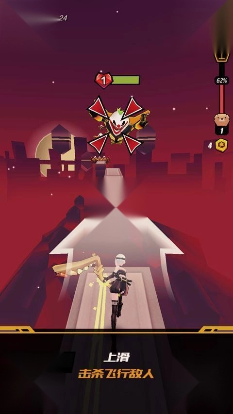不要逃避小丑,朝着他的位置滑动屏幕(侧滑或上滑)来击败他,不然就会遭到小丑的攻击,导致生命值下降。