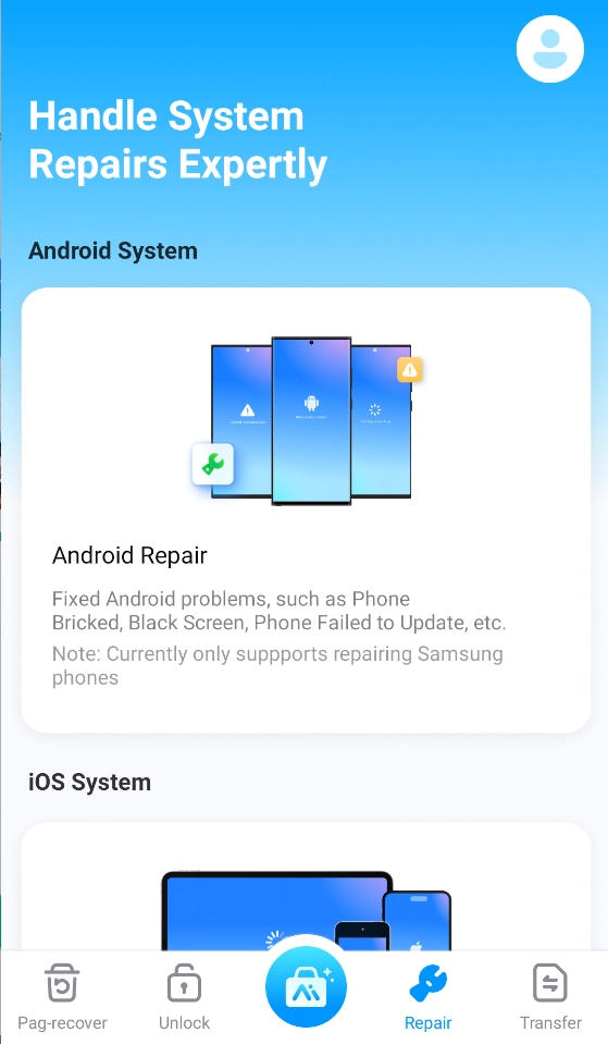 系统修复:针对iOS、Android系统存在的错误以及iTunes相关错误进行修复。