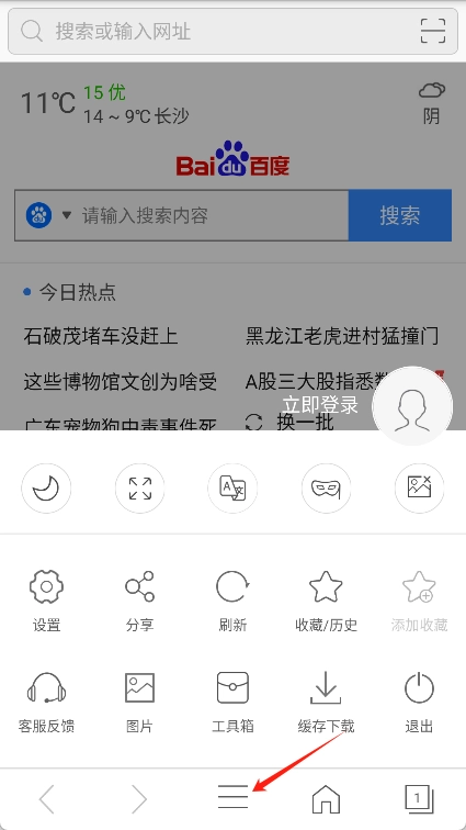 点击主页正下方的图标(如图所示),这时会弹出多个选项。