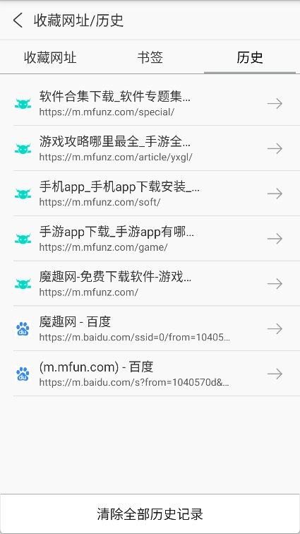 如图所示,我们的历史浏览记录便成功显示出来了。