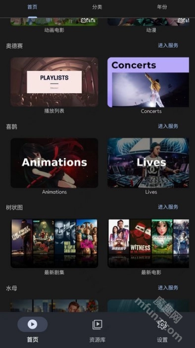 界面设计上,秉持简约风格且功能完备,通过直观化的界面布局与多视图展示模式,助力用户便捷地浏览并播放喜爱的内容。