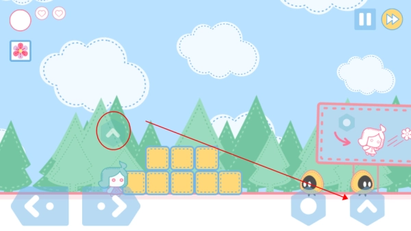 这款游戏采用横版操作模式,界面左侧用于控制角色移动,右侧则主要承担跳跃和技能释放的功能,玩家可以利用特殊武器,将敌人转化为盛开的花朵。