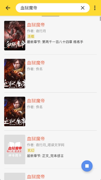 你也可以在搜索框中输入小说名称或作者名字,软件会随即列出相关的搜索结果。