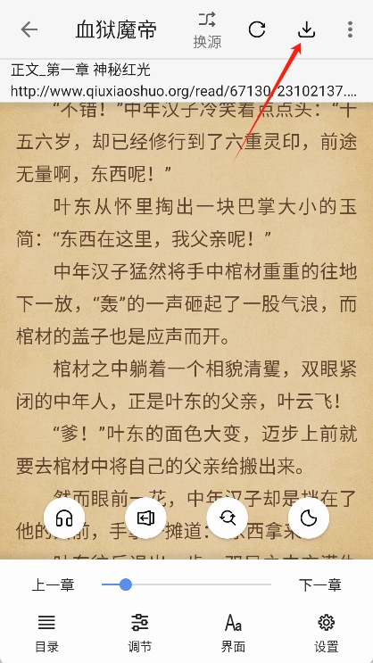 也支持点击右上角的“”按钮,可以将小说保存到自己的设备中。