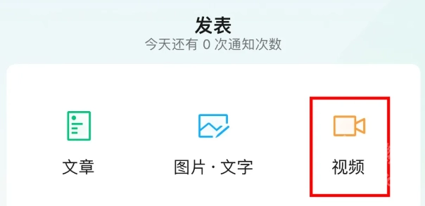登录成功后,在首页底部找到并点击【发表】按钮,接着在进入的【发表】页面里选择“文章”选项。