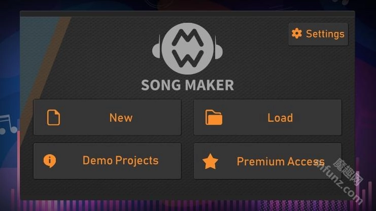 首先前往魔趣网(m.mfunz.com)安装song maker软件,打开该软件后,就能看到软件内部清晰的版块介绍。