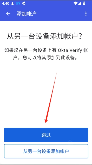 要是你在其他设备上登录过Okta Verify账号,可选择“从另一台设备添加账户”;要是没登录过,就点击“跳过”