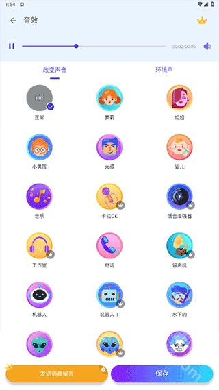Voice Changer 具备多种变声效果,像小萝莉、御姐音、幽灵、机器人等都包含在内。用户只需轻点操作,就能为声音添加有趣的音效。