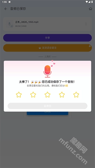 社交分享:这款应用支持借助微信、QQ等社交平台,让用户与朋友分享有趣的声音作品,以此增添互动性和趣味性。