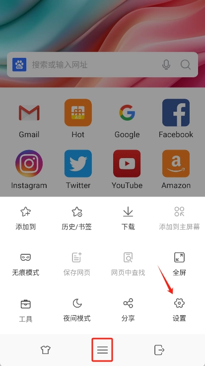 然后点击屏幕下方导航栏中间的更多功能图标,在弹出的窗口里进入设置页面。