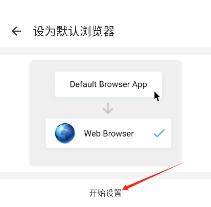 在设置页面里打开“设为默认浏览器”的选项,接着进入设置流程,点击“开始设置”按钮。