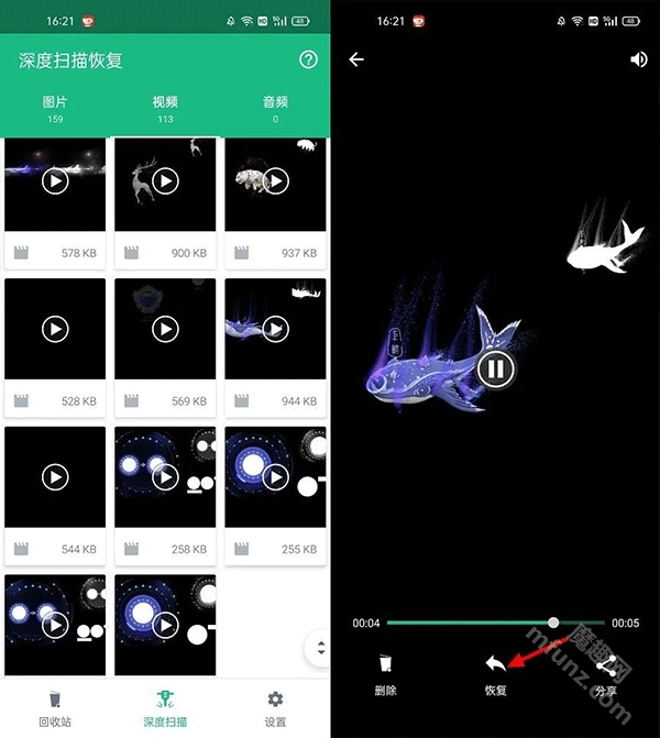 它的功能有点像电脑上的回收站,能用来储存手机里被删除的文件。当开启回收站功能后,软件就可以保存那些被删除的图片、视频、音频以及各类文件了。