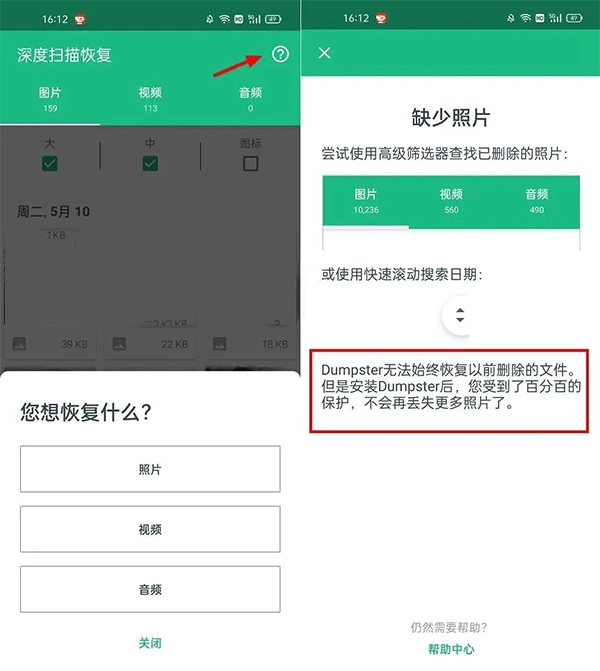 误删恢复:不管是误操作、手机出问题还是其他情况,一旦你发现重要文件被删掉了,Dumpster都能帮你简单快捷地把它们找回来。