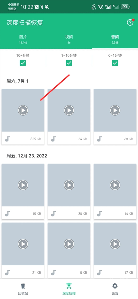 除了图片,视频和音频文件同样适用这个方法,大家可以先切换到对应的文件类型分类下,查看是否有自己需要恢复的视频和音频内容,具体操作可参考图示。