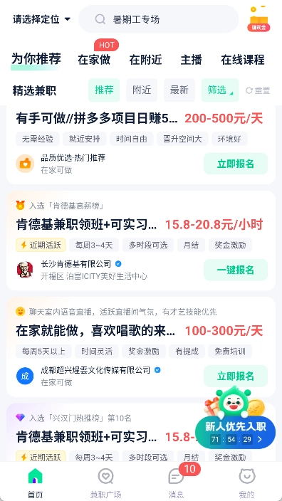 本平台能帮您快速找到心仪的兼职工作。通过商家主页,您可以查看企业介绍、过往兼职岗位和评价。简单一键就能报名,还能随时了解报名进展,沟通也很顺畅。