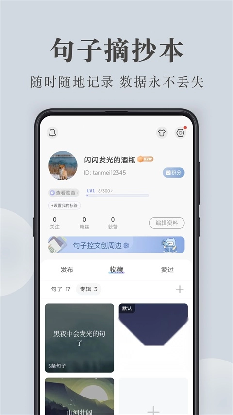 本应用专注于攻克句子收集与分享的难点,助力你高效梳理和分享个人的句子收藏,和其他用户共同积累智慧的精粹。