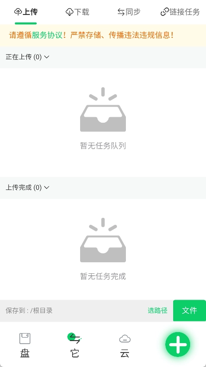 在首页点击“上传文件”功能,选择需要上传的文件或文件夹,等待上传完成即可。