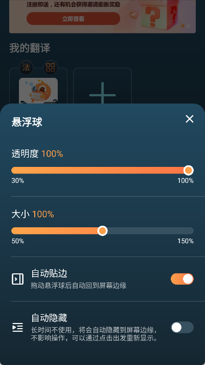 悬浮窗设置:用户能够对悬浮窗进行个性化配置,从而更方便地查看与操作翻译结果。