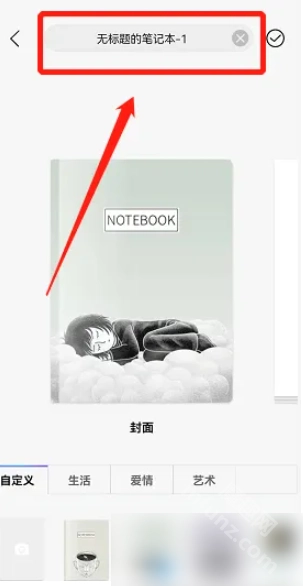 第四步,挑选一个图案作为笔记封面,接着点击右上方的打勾图标进入下一步。具体操作可参照下图: